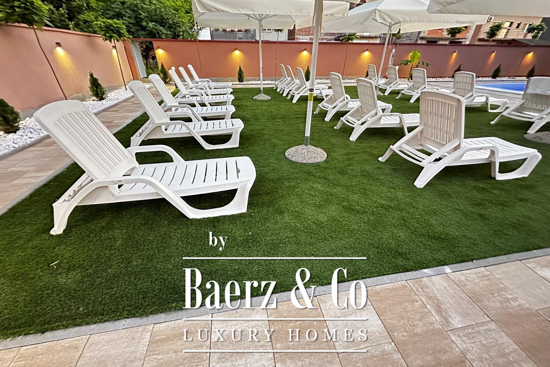 Via grote raampartijen ontvouwt zich een sereen uitzicht op de Donau. PVC kozijnen en gasverwarming staan garant voor modern comfort. De woning beschikt over vier garageplaatsen en 20 parkeerplaatsen buiten, ruim voldoende voor zowel bewoners als gasten. Er is een gebruiksvergunning aanwezig, wat directe bewoning of investering probleemloos mogelijk maakt.