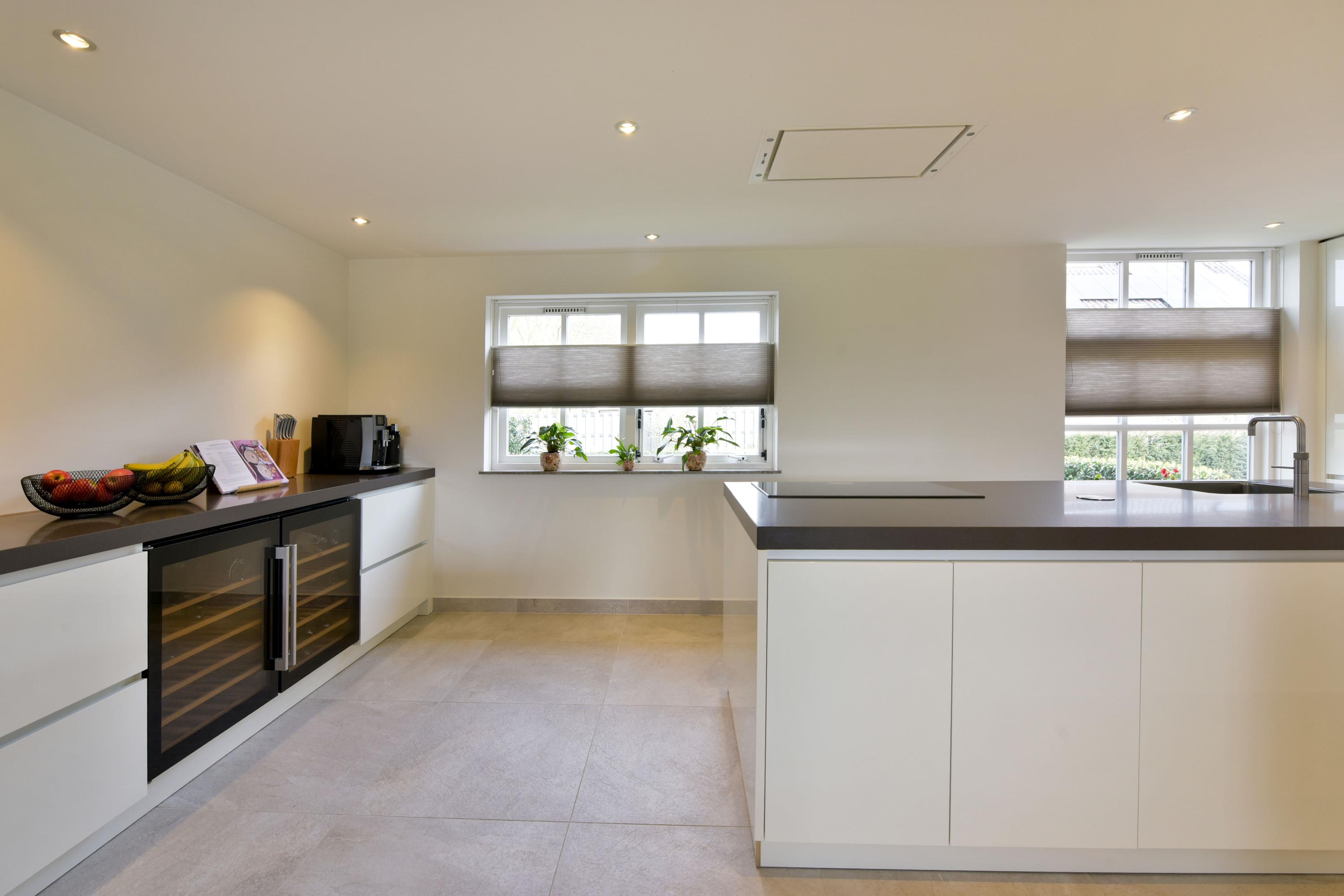 Bij binnenkomst valt direct de royale hal op, die zorgt voor een prettige en open ontvangst. Vanuit deze representatieve hal heb je toegang tot het toilet, de vernieuwde meterkast voorzien van een 3 fase aansluiting, de multifunctionele ruimte en de heerlijk lichte woonkamer met open keuken. De L-vormige woonkamer bevindt zich aan de achterzijde van de woning en is een heerlijke plek om samen te komen. Grote raampartijen en de schuifpui zorgen voor een prachtige lichtinval en een naadloze verbinding met de tuin. Het vrije uitzicht over het groen maakt dat elk seizoen hier zijn charme heeft. De keramische vloer met vloerverwarming ( op de gehele BG), de subtiel geïntegreerde spotverlichting en de strak weggewerkte bekabeling dragen bij aan de rustige, moderne uitstraling. Aan de voorzijde van de woning ligt de indrukwekkende open keuken geplaats in 2019 , die met recht riant te noemen is. Het grote kookeiland vormt het centrale punt, perfect om samen te koken of gezellig aan te zitten. Aan beide zijden vind je stijlvolle kastenwanden met een compleet pakket aan inbouwapparatuur: een combi-oven, stoomoven, koelkast, vriezer, vaatwasser, inductiekookplaat, plafondafzuiging, Quooker en 2 wijnklimaatkasten. De gehele woning is voorzien van spotledverlichting met touch-dimmers, wat zorgt voor een sfeervolle en flexibele verlichting. Vanuit de centrale hal bereik je tevens de multifunctionele ruimte, voorheen de garage. Deze ruimte is nu volledig geïntegreerd in de woning en biedt talloze mogelijkheden, zoals een werkruimte, praktijk aan huis of extra leefruimte. Hier bevindt zich ook een moderne badkamer van 2022 voorzien van een dubbele regendouche ’s , wastafel, wc en design elektrische handdoekradiatoren, dus ook een slaapkamer op de begane grond behoort tot de mogelijkheden.