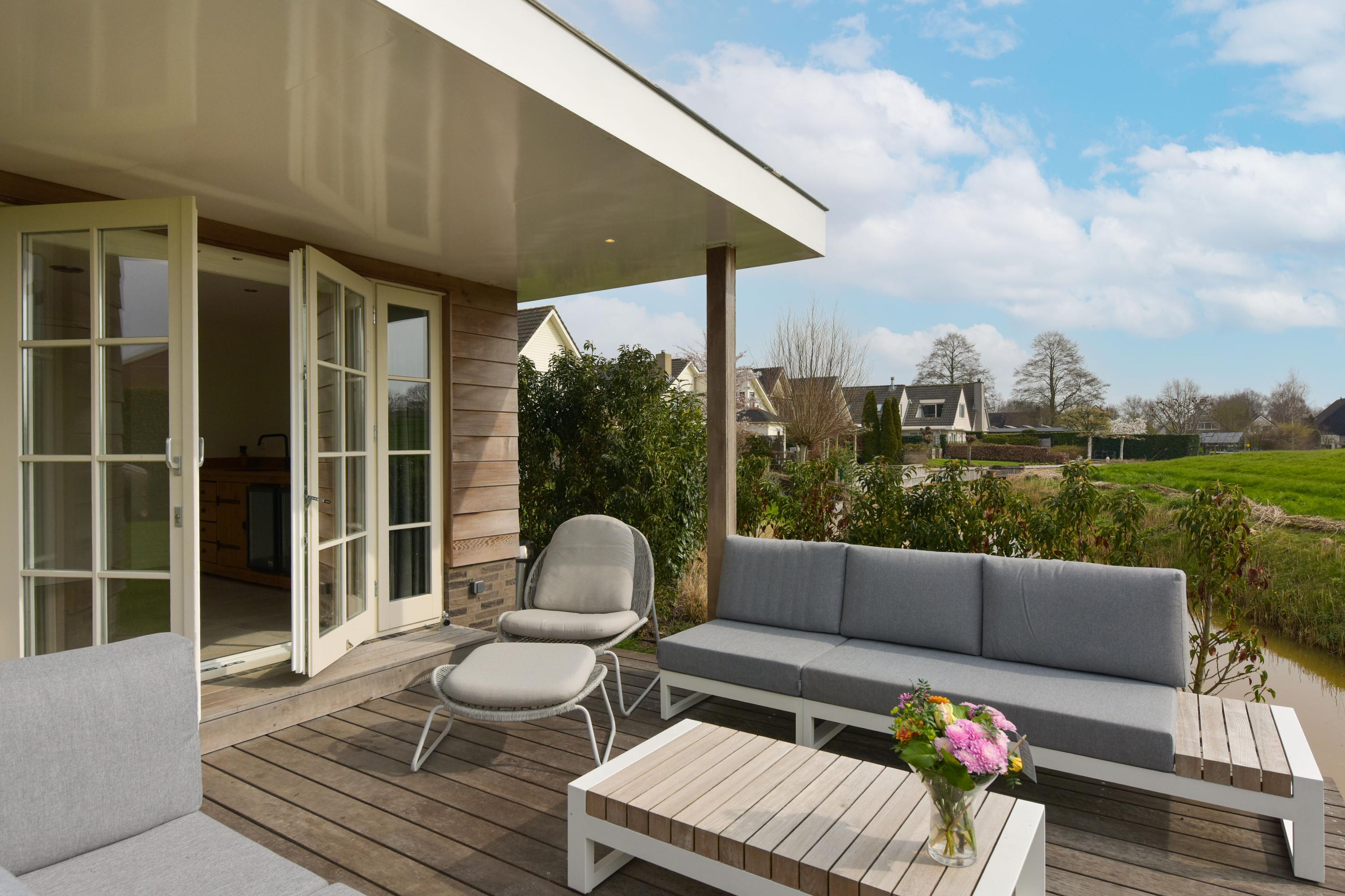Het bijgebouw biedt bijzonder veel bergruimte en is zelfs voorzien van vloerverwarming. Aan de voorzijde een praktische berging waar ook de omvormer hangt van de PV installatie. Aan de achterzijde bevindt zich een luxe relaxruimte met sauna met een biokachel zodat er gekozen kan worden tussen een Finse sauna, een stoom sauna, kruidensauna en een geurensauna, regendouche, toilet en een houten keukenblok met twee horeca koelkasten, een plek waar ontspanning centraal staat. Het lager gelegen, aangrenzende terras biedt een prachtig uitzicht over het water en het omliggende groen en nodigt uit tot lange, ontspannen avonden. Achterin de tuin vind je diverse fruitbomen, waaronder een pruimenboom en een walnotenboom, en een volledig uitgeruste moestuin met water en elektriciteit. Door de gehele tuin is sfeervolle verlichting aangebracht en via een praktische achterom is de tuin ook buitenom bereikbaar. Een fantastische tuin waarin je kunt relaxen, kinderen eventueel een plek kunnen vinden om uitgebreid te spelen, waar je een enorm gevoel van ruimte en vrijheid in ervaart, een unieke plek! Vrijwel de gehele woning is bovendien voorzien van plissé horren, wat bijdraagt aan het comfort in de warmere maanden.