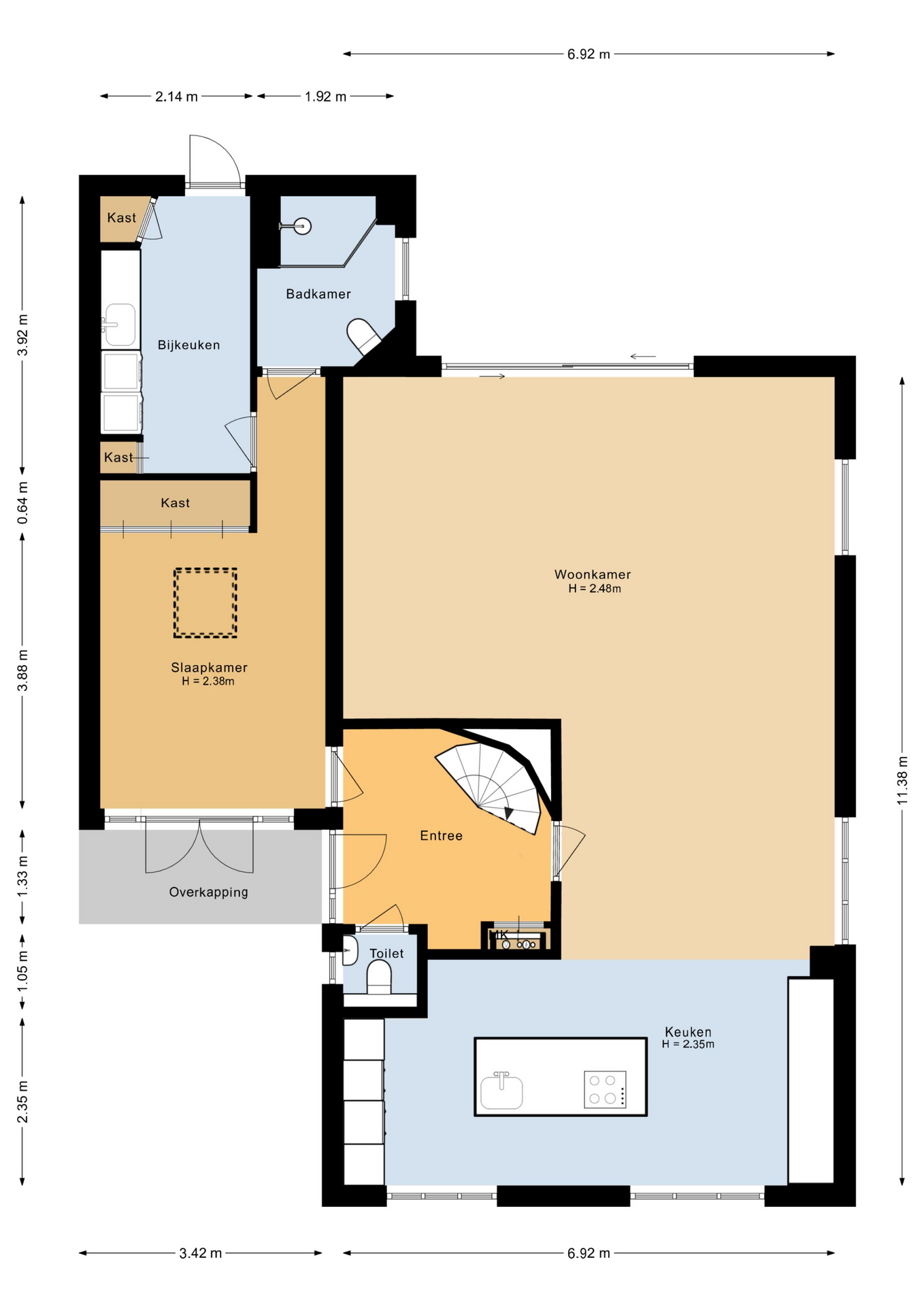 Een aparte ruimte voor de wasmachine en de wasdroger, een klein keukenblok en de netjes weggewerkte CV-installatie van 2020 maken de begane grond compleet. Vanuit deze bijkeuken heb je direct toegang tot de tuin.