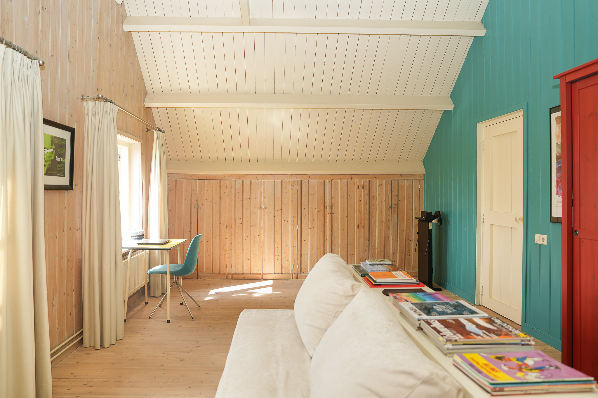 De ene ruimte fungeert momenteel als werkkamer; de andere is ideaal als gastenkamer dankzij de aangrenzende douche- en toiletruimte. In de werkkamer is een luik naar een kelder.