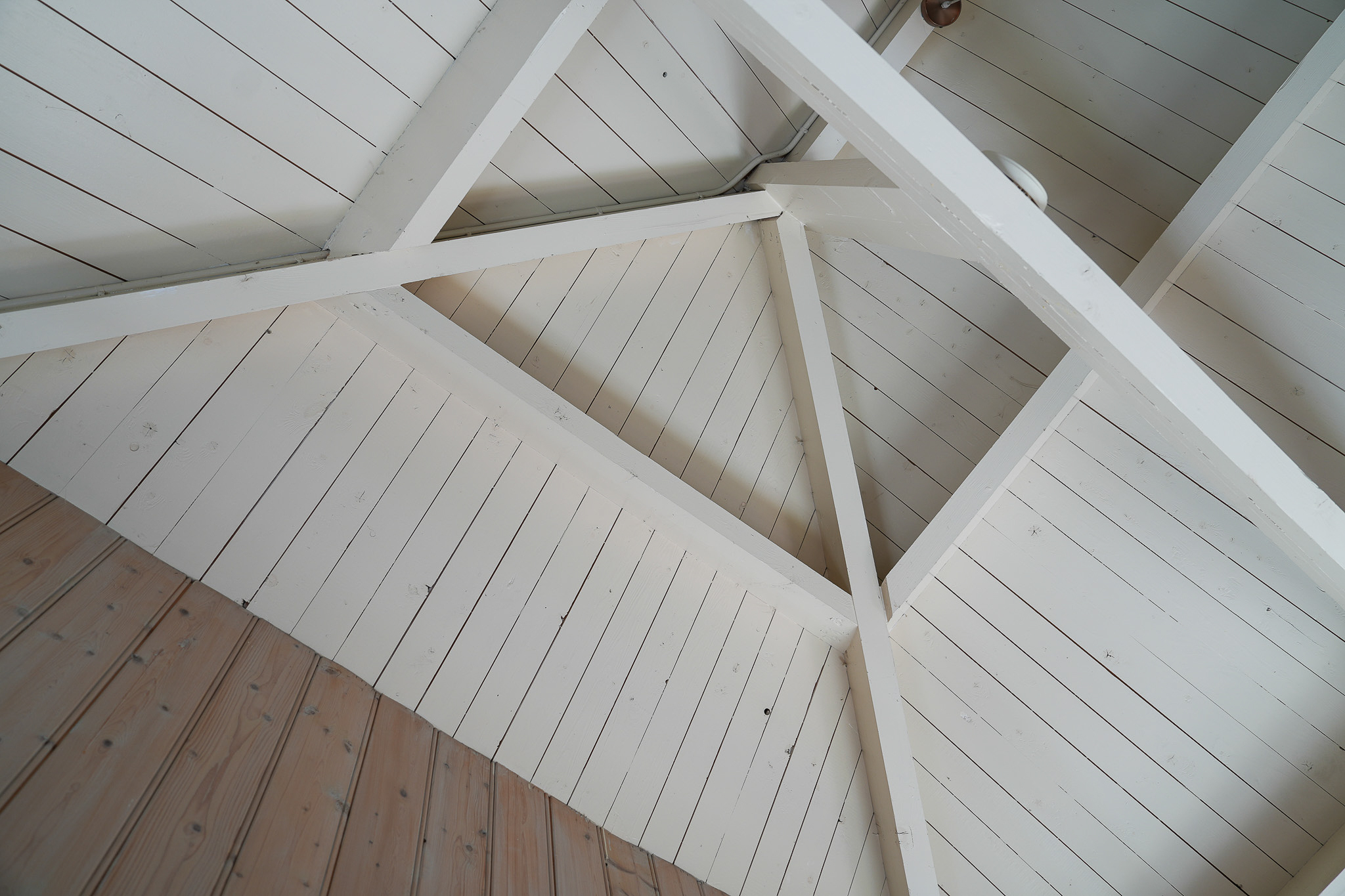 De overige twee slaapkamers zijn speels vormgegeven, met zichtbare kapconstructie en roederamen die een fraai uitzicht over de omgeving bieden. De badkamer is in dezelfde stijl afgewerkt als de slaapkamers en uitgerust met een ligbad, douchecabine en dubbele wastafel.